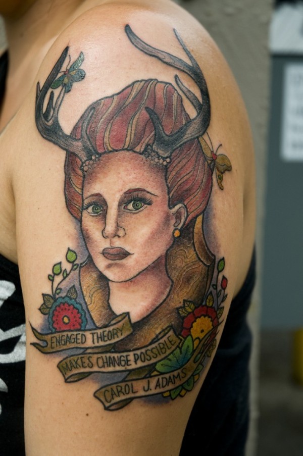 肩部复古风格的彩色图女人纹身