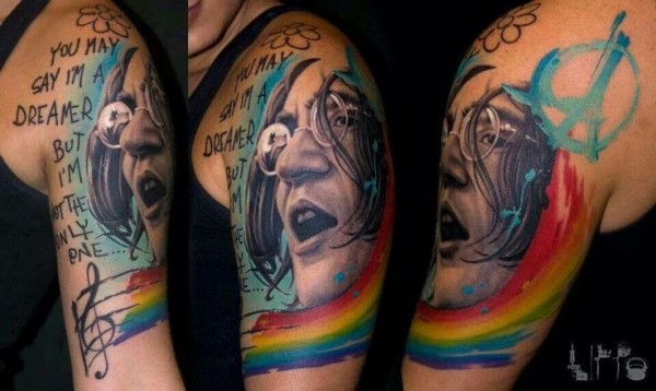 新学校风格彩色肖像彩虹纹身图片