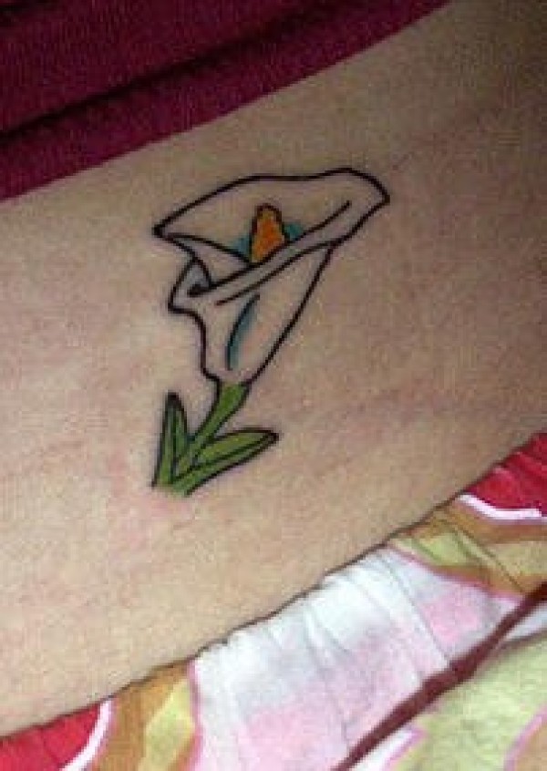 手臂简约白色马蹄莲的纹身图案