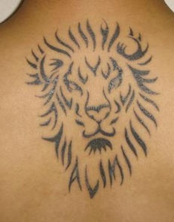 背部黑色简约的部落狮子纹身图片