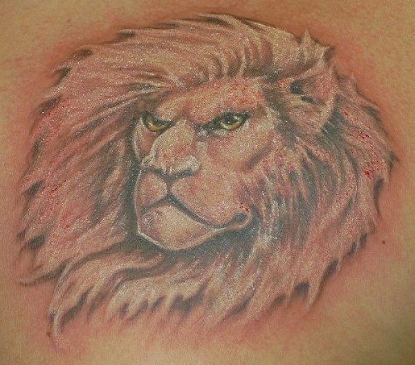 背部棕色愤怒的狮子头纹身图案