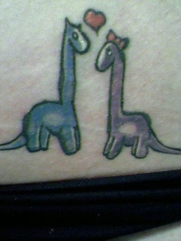 腹部彩色卡通恐龙爱纹身图案