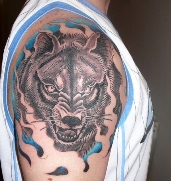 肩部日本狼纹身图案