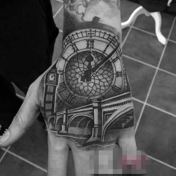 多款黑色素描点刺技巧经典建筑大本钟创意纹身图案