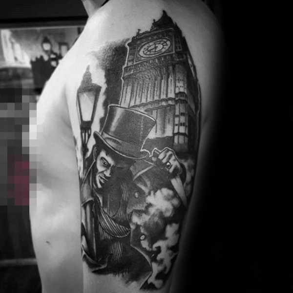多款黑色素描点刺技巧经典建筑大本钟创意纹身图案