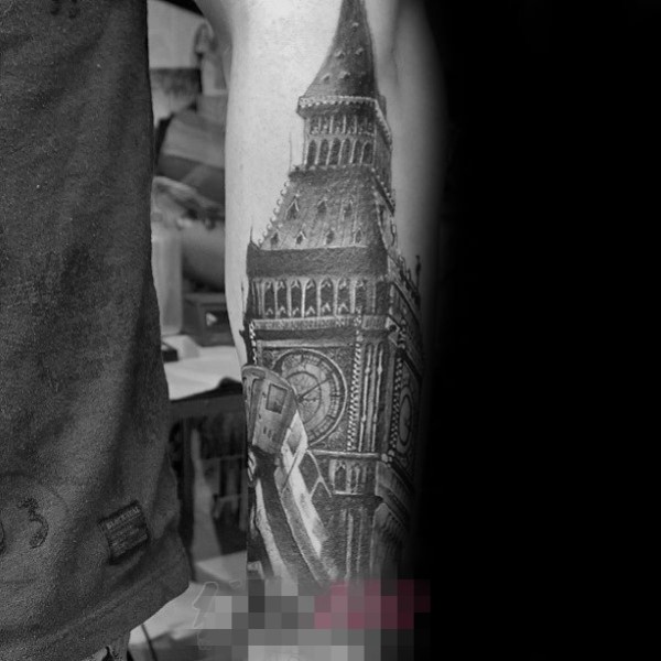 多款黑色素描点刺技巧经典建筑大本钟创意纹身图案