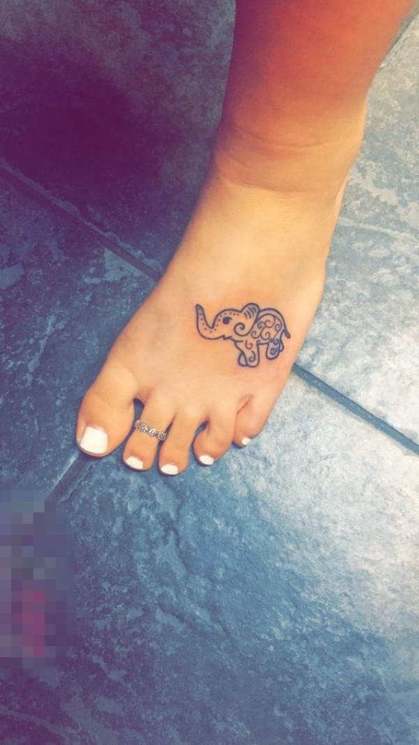 女生脚背上黑色线条创意花纹动物大象纹身图片