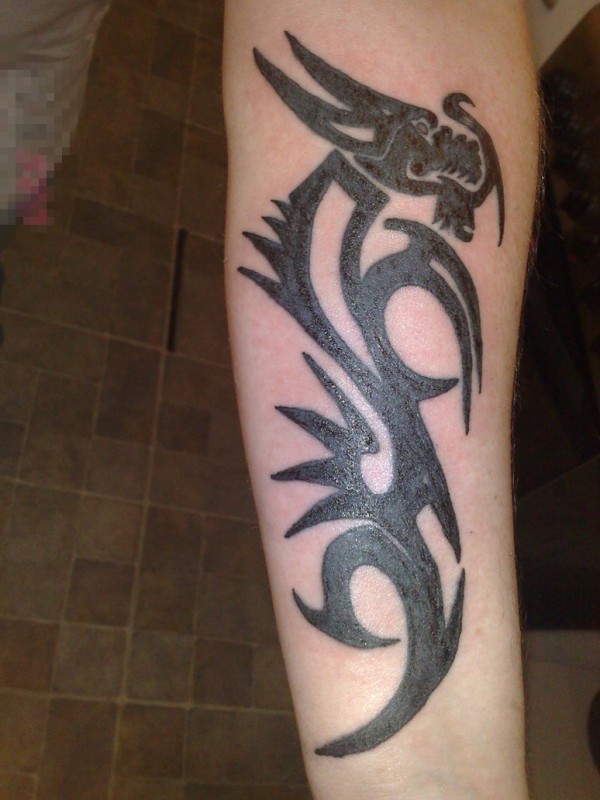男生手臂上黑色线条创意霸气龙图腾纹身图片