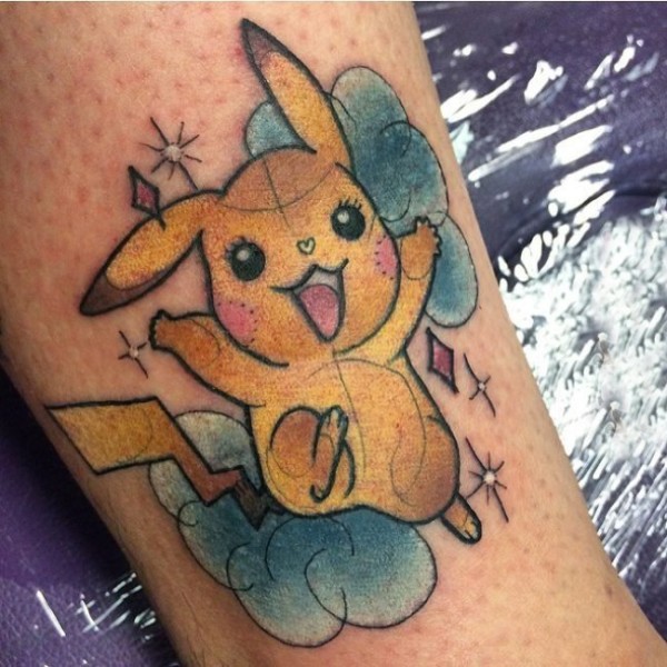 男生手臂上彩绘素描创意神奇宝贝卡通纹身图片