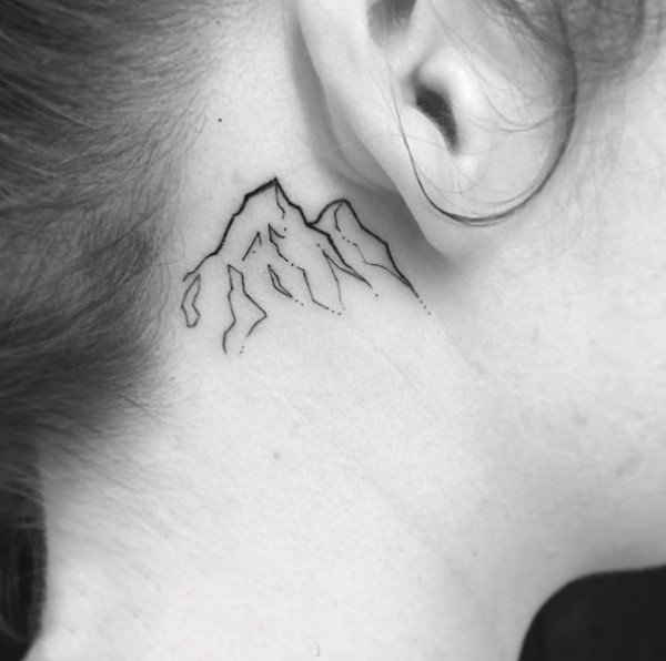 巍峨的个性点刺技巧抽象线条山脉风景纹身图案
