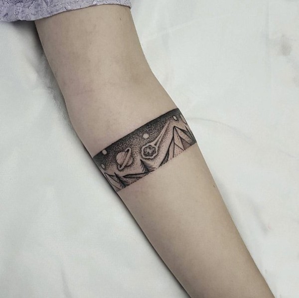巍峨的个性点刺技巧抽象线条山脉风景纹身图案