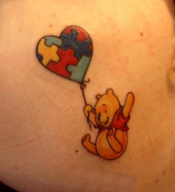 男生手臂上彩绘卡通小熊维尼和气球纹身图片