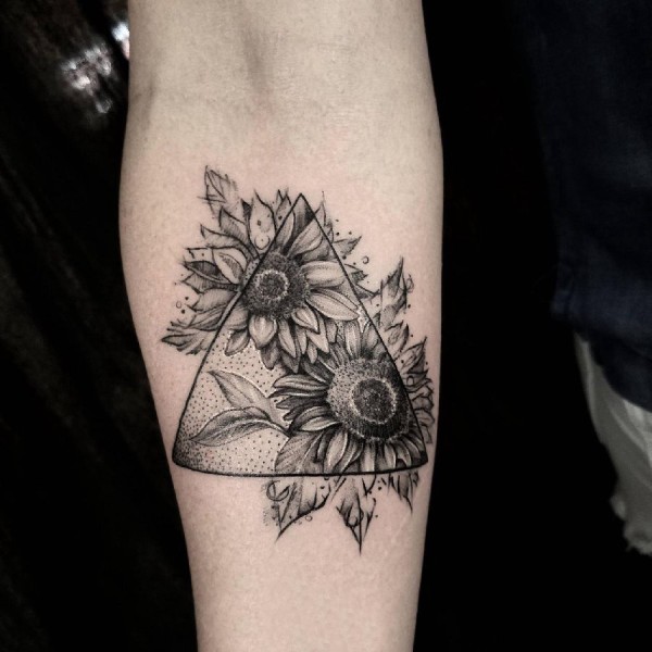草图感向日葵纹身图案_植物纹身图案大全_纹身图吧