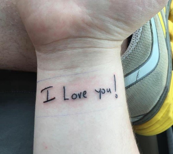 男生手腕上黑色简单线条创意英文短句纹身图片