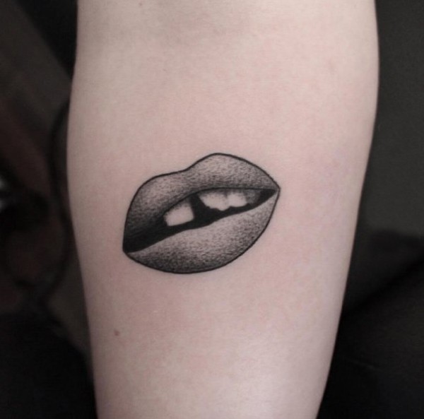 厚实性感的几何简单个性线条创意嘴唇纹身图案