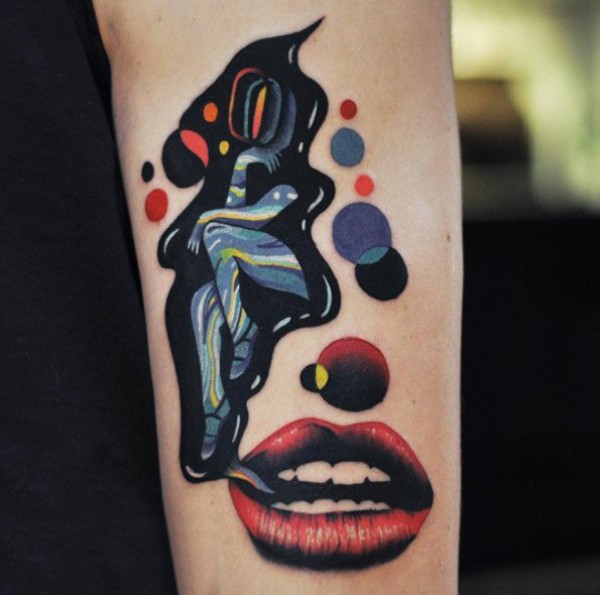 厚实性感的几何简单个性线条创意嘴唇纹身图案