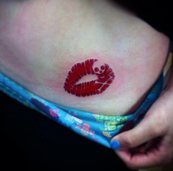 厚实性感的几何简单个性线条创意嘴唇纹身图案