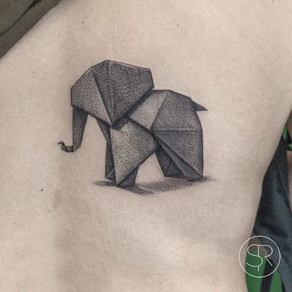 多款黑灰素描点刺技巧创意几何元素动物纹身图案