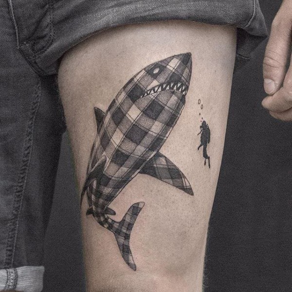 多款黑灰素描点刺技巧创意几何元素动物纹身图案