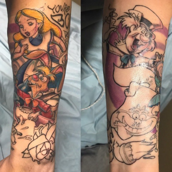 男生手臂上彩绘水彩素描创意文艺卡通纹身图片