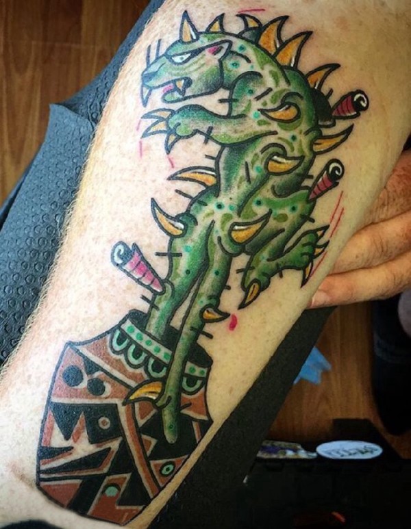 男生手臂上彩绘水彩素描创意怪物纹身图片