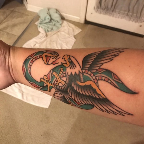 男生手臂上彩绘水彩素描霸气经典老鹰纹身图片