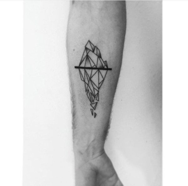 男生手臂上黑灰点刺技巧几何简单线条冰山纹身图片