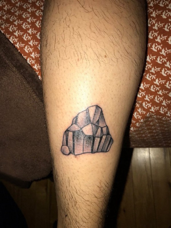男生手臂上黑灰素描点刺技巧经典石头纹身图片