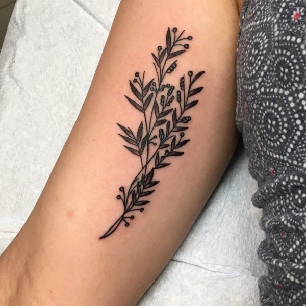 小清新植物纹身 女生手臂上黑色的植物纹身图片