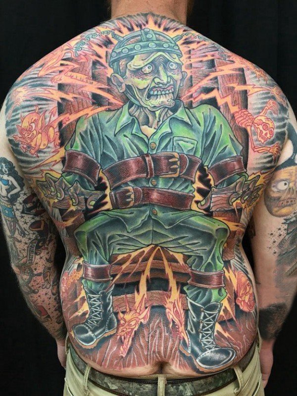 美国士兵纹身 男生后背上大面积美国士兵纹身图片