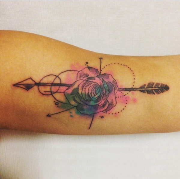 大臂纹身图 男生大臂上花朵和箭纹身图片