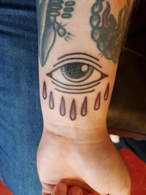 眼睛纹身 男生手腕上彩色的眼睛纹身图片