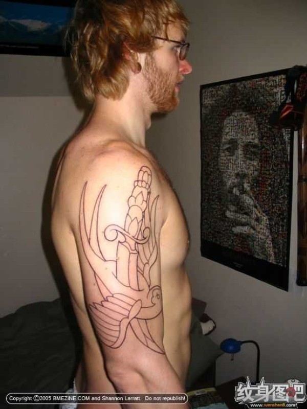 被匕首刺穿的鸟纹身