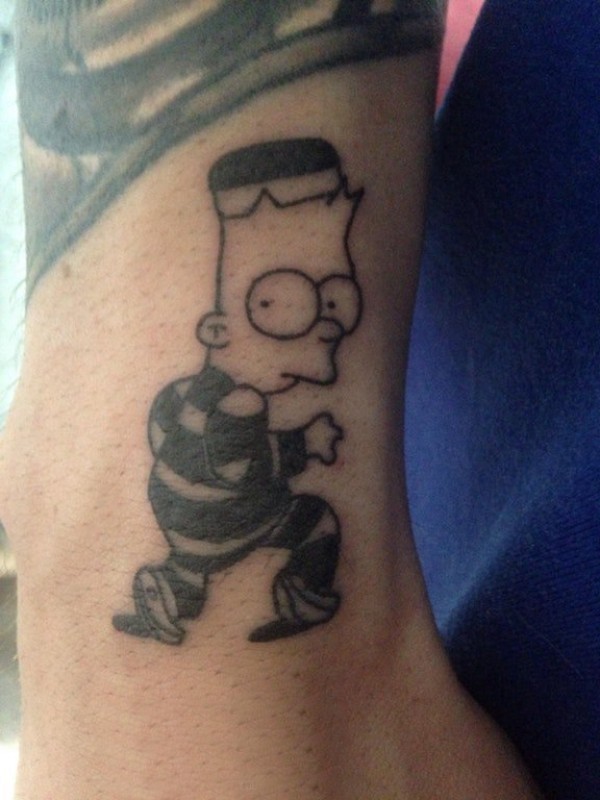 纹身卡通 男生手臂上黑色的卡通人物纹身图片