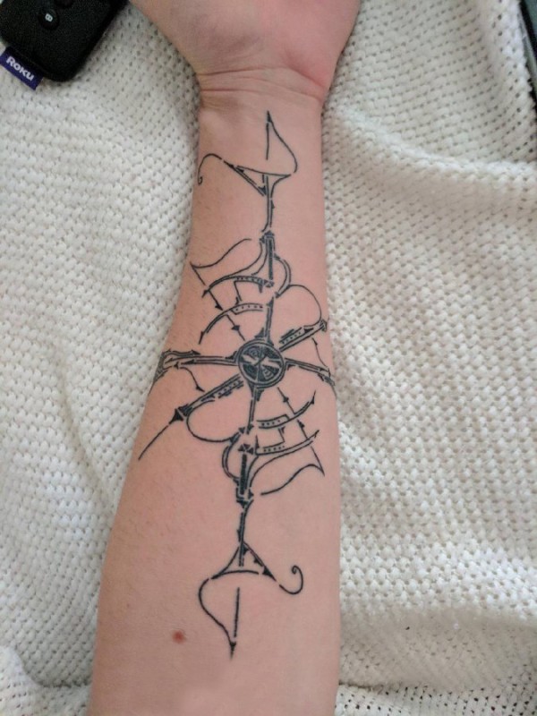 简单线条纹身 女生手臂上简单线条纹身指南针图片