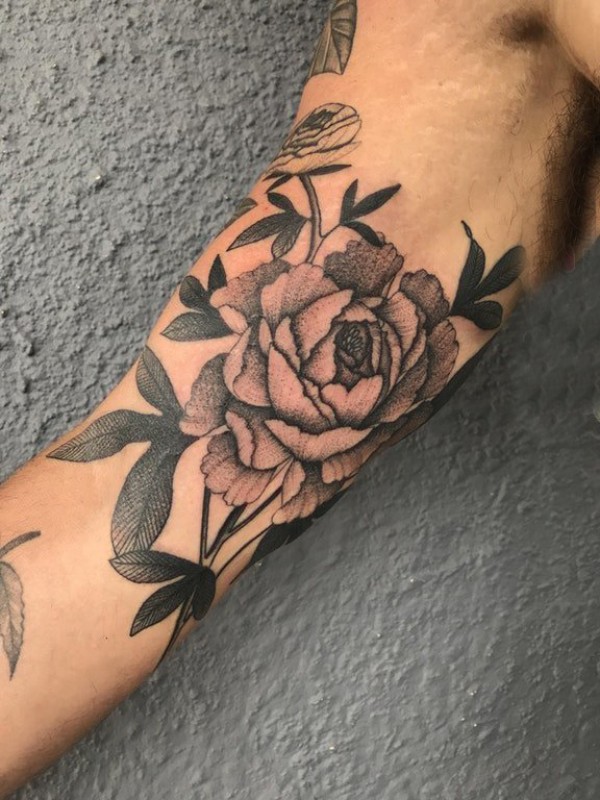 欧美玫瑰纹身 男生手臂上花朵纹身图片
