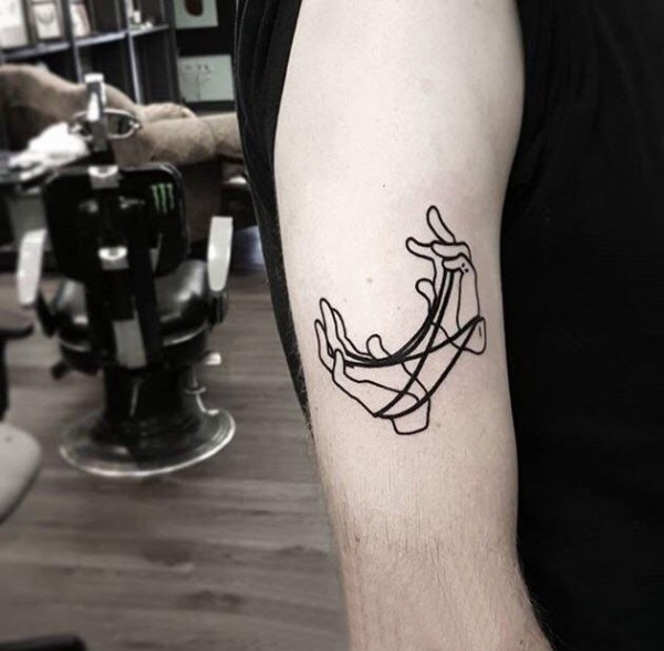 极简线条纹身 男生手臂上黑色的手部纹身图片