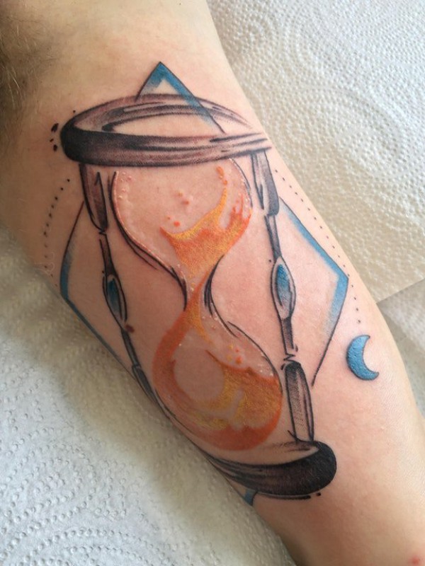 纹身沙漏 男生手臂上彩绘纹身沙漏图片