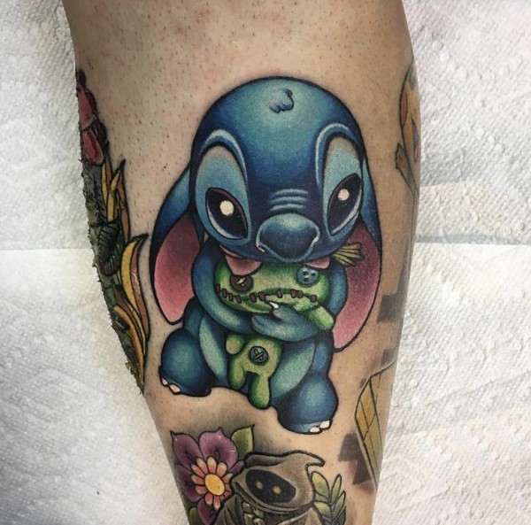 纹身卡通 男生小腿上彩绘的卡通人物纹身图片