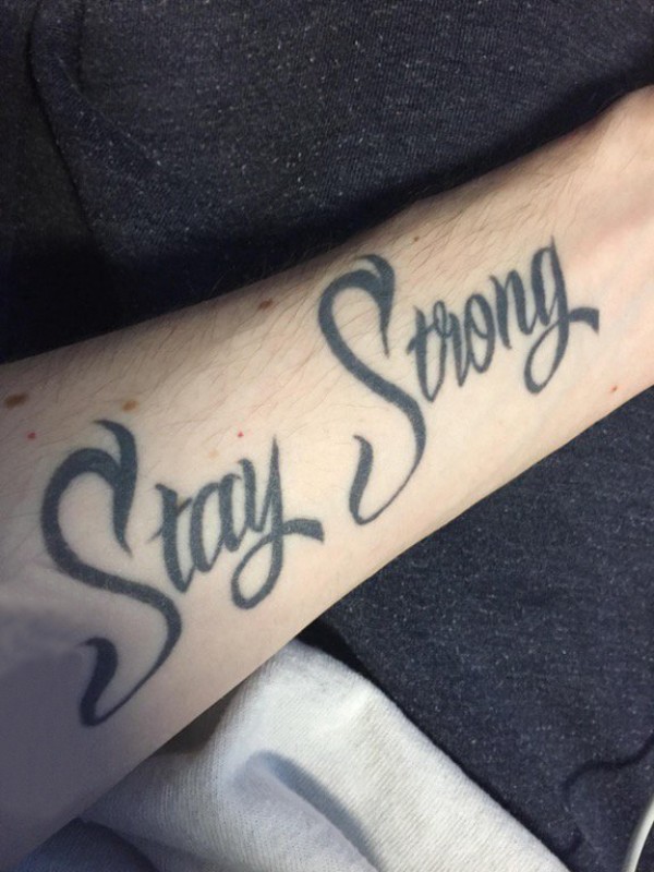 花体英文纹身 男生手臂上花体英文纹身素描图片