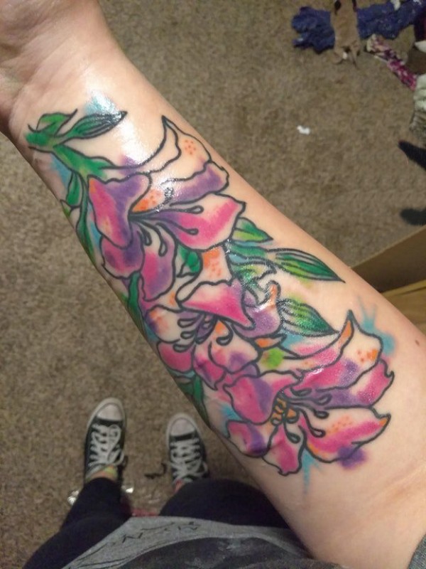 手臂纹身素材 男生手臂上彩色的花朵纹身图片