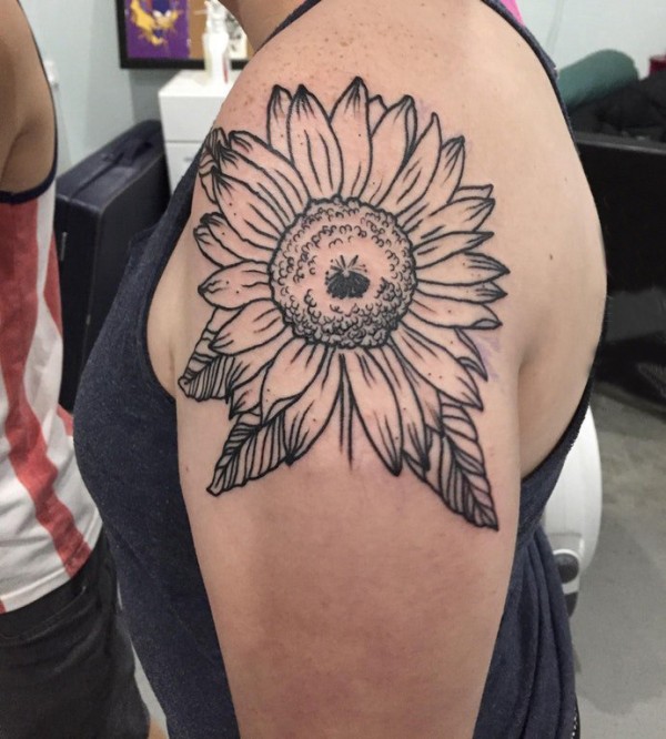 向日葵纹身图片 女生大臂上黑色的向日葵纹身图片