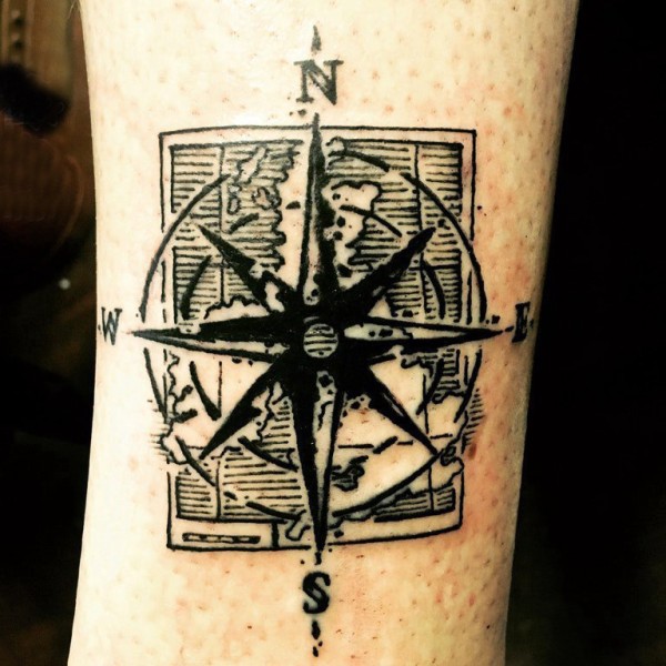纹身指南针 男生手臂上黑色纹身指南针图片