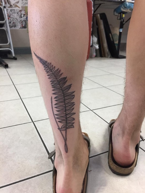 纹身叶子图案 男生小腿上黑色的叶子纹身图片