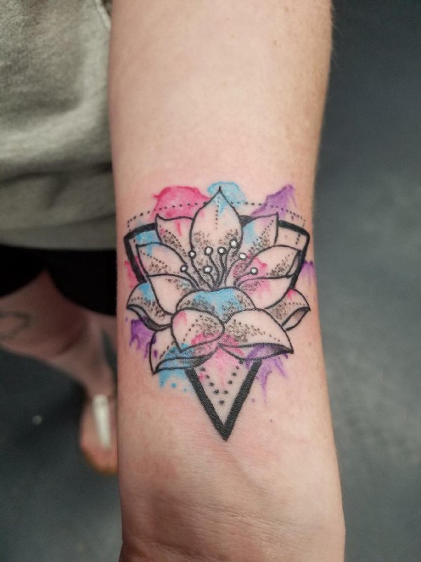 文艺花朵纹身 男生手臂上彩色渐变纹身花朵纹身图片