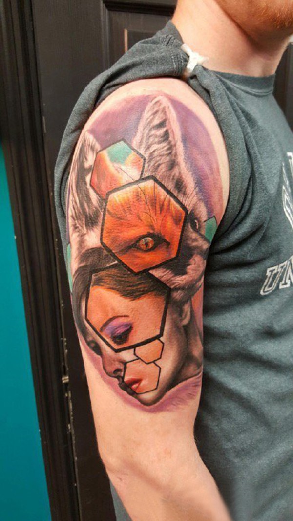 女生人物纹身图案 男生手臂上狼纹身女生人物纹身图案