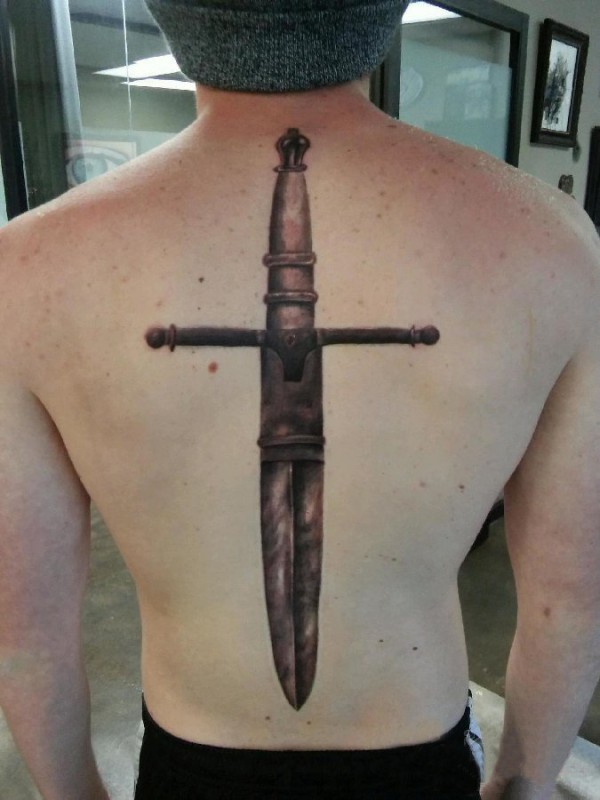 欧美匕首纹身 男生背部欧美匕首纹身图案