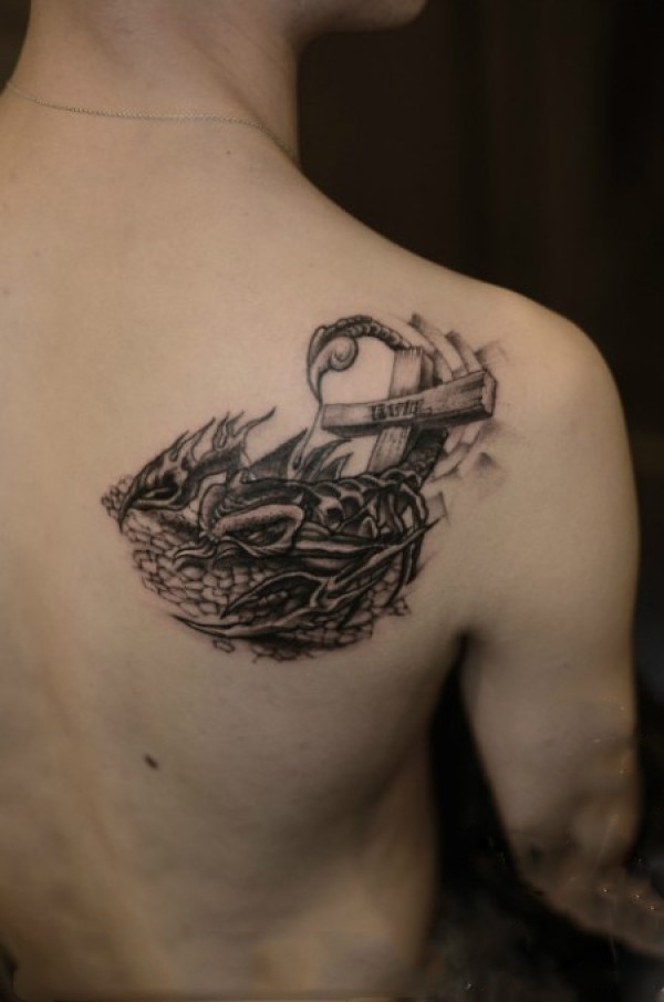 霸气过肩龙半甲纹身
