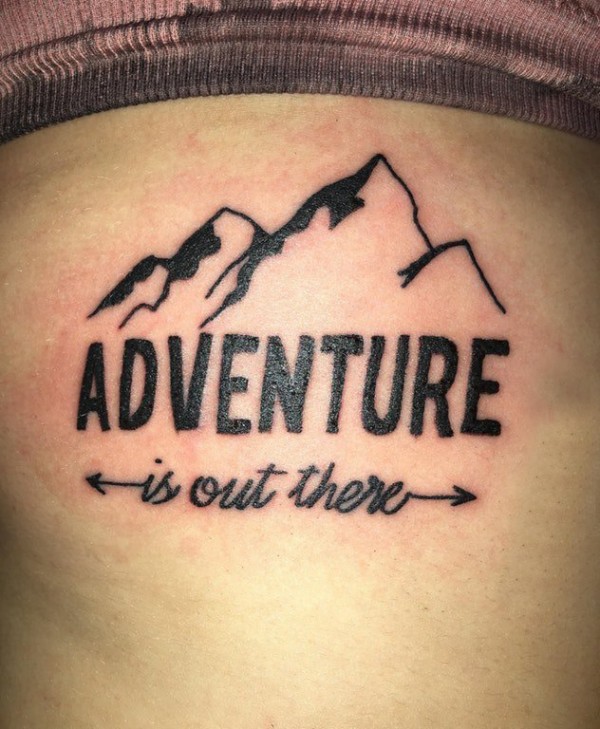 小山峰纹身 男生大腿上小山峰纹身和花体英文纹身图片
