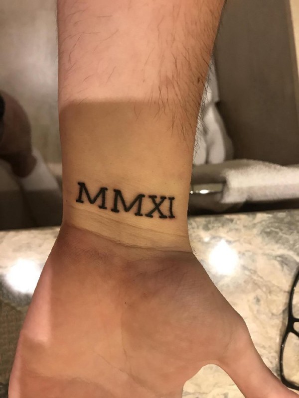 花体英文纹身 男生手腕上花体英文纹身黑色纹身图片